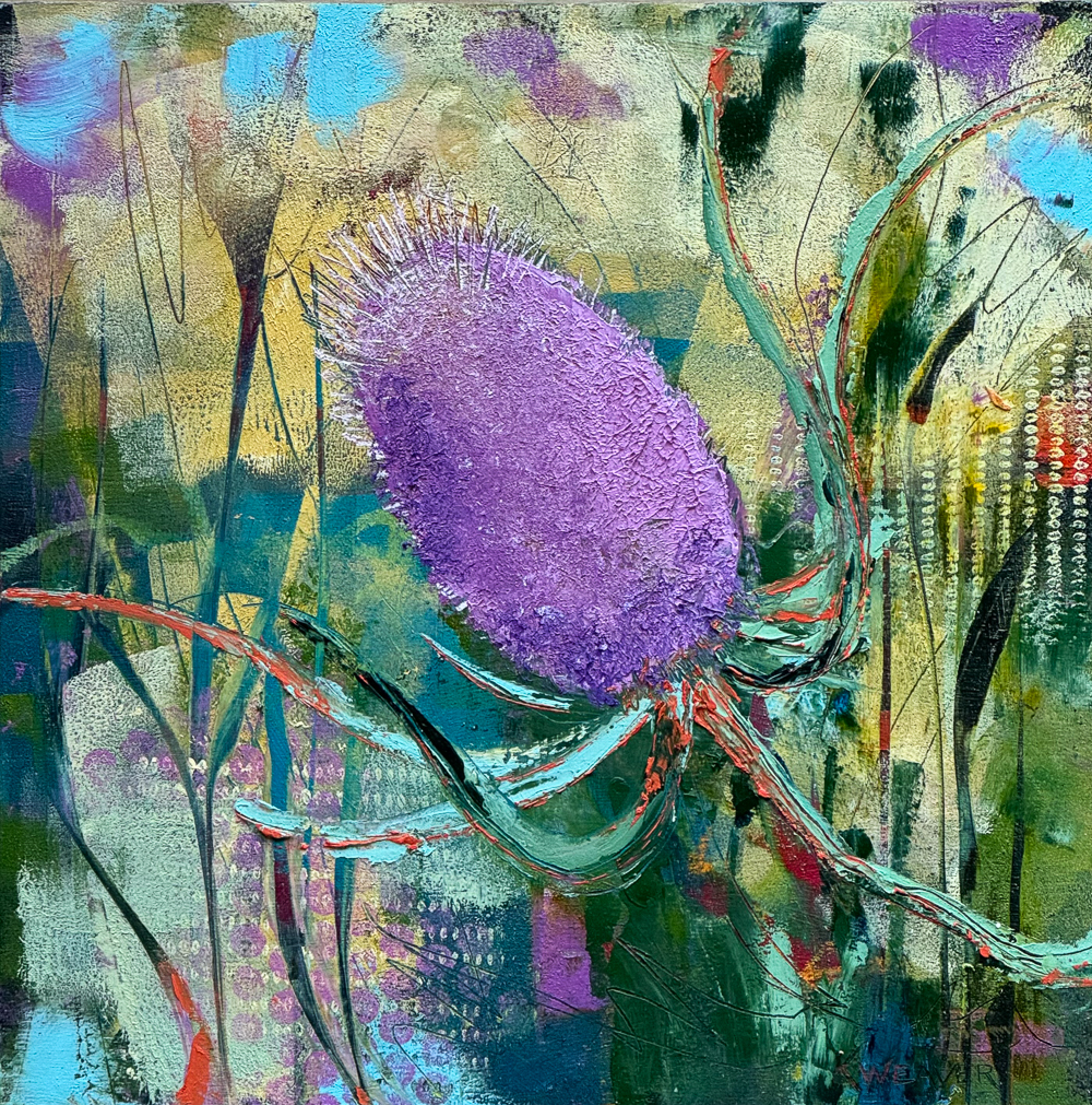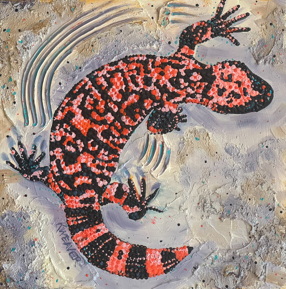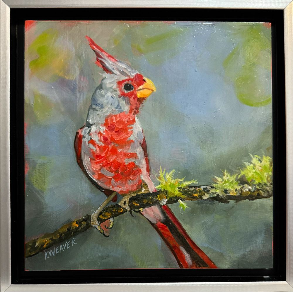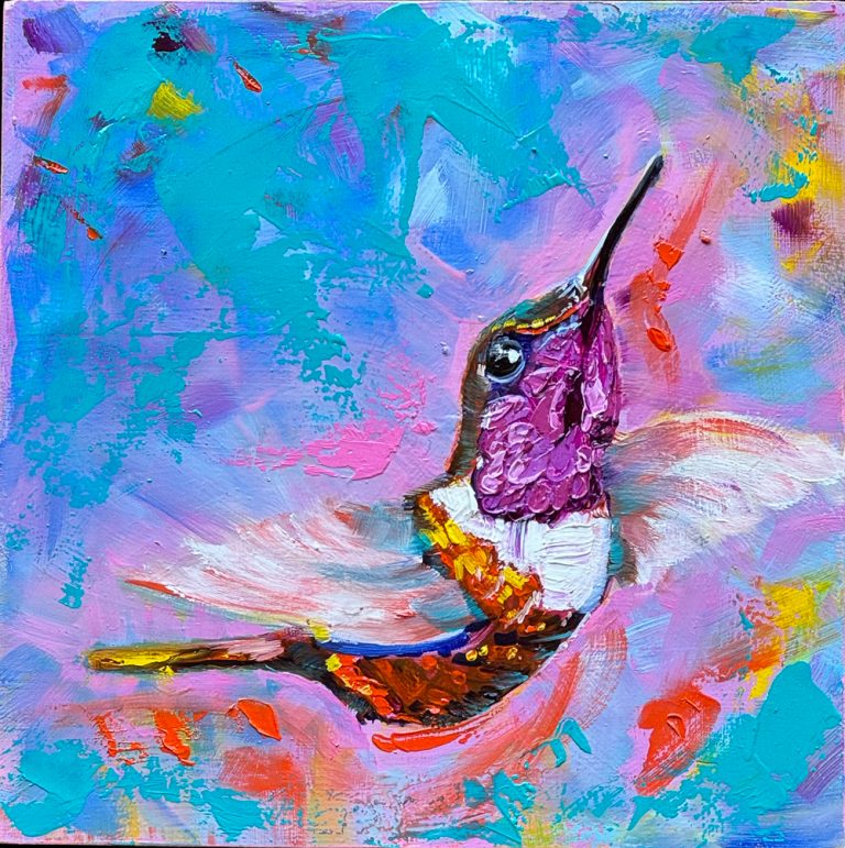 The beauty of oil paint is the ability to blend colors. It’s the perfect medium for creating impressions of our captivating Sonoran desert sunsets and soft, colorful backgrounds for our numerous birds and lovely florals. I also have a lot of fun using painting knives to apply thick paint and create textured floral representations.